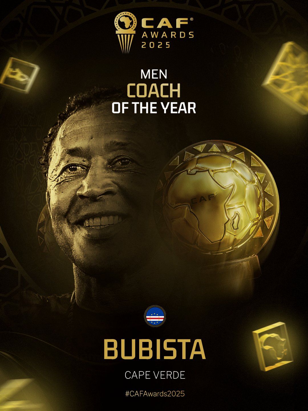 توج بوبيستا مدرب منتخب كاب فيردي بجائزة أفضل مدرب للرجال 2025 بالحفل الذي ينظمه الاتحاد الأفريقي لكرة القدم “كاف” بمدينة الرباط المغربية، وسط حضور بارز من نجوم ونجمات الساحرة المستديرة في القارة السمراء.