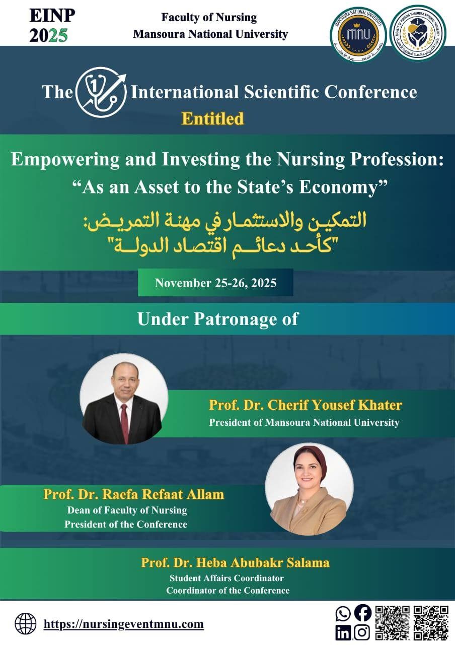 تستعد جامعة المنصورة الأهلية لإطلاق مؤتمرها الدولي الأول الذي تنظمه كلية التمريض تحت عنوان "التمكين والاستثمار في مهنة التمريض: كأحد دعائم اقتصاد الدولة"، وذلك خلال الفترة من 25 إلى 26 نوفمبر 2025. يقام المؤتمر تحت رعاية الدكتور شريف يوسف خاطر رئيس الجامعة، وبرئاسة الدكتورة رئيفة رفعت علام عميد كلية التمريض، فيما تتولى الإشراف على أعماله المقرر العام للمؤتمر.
