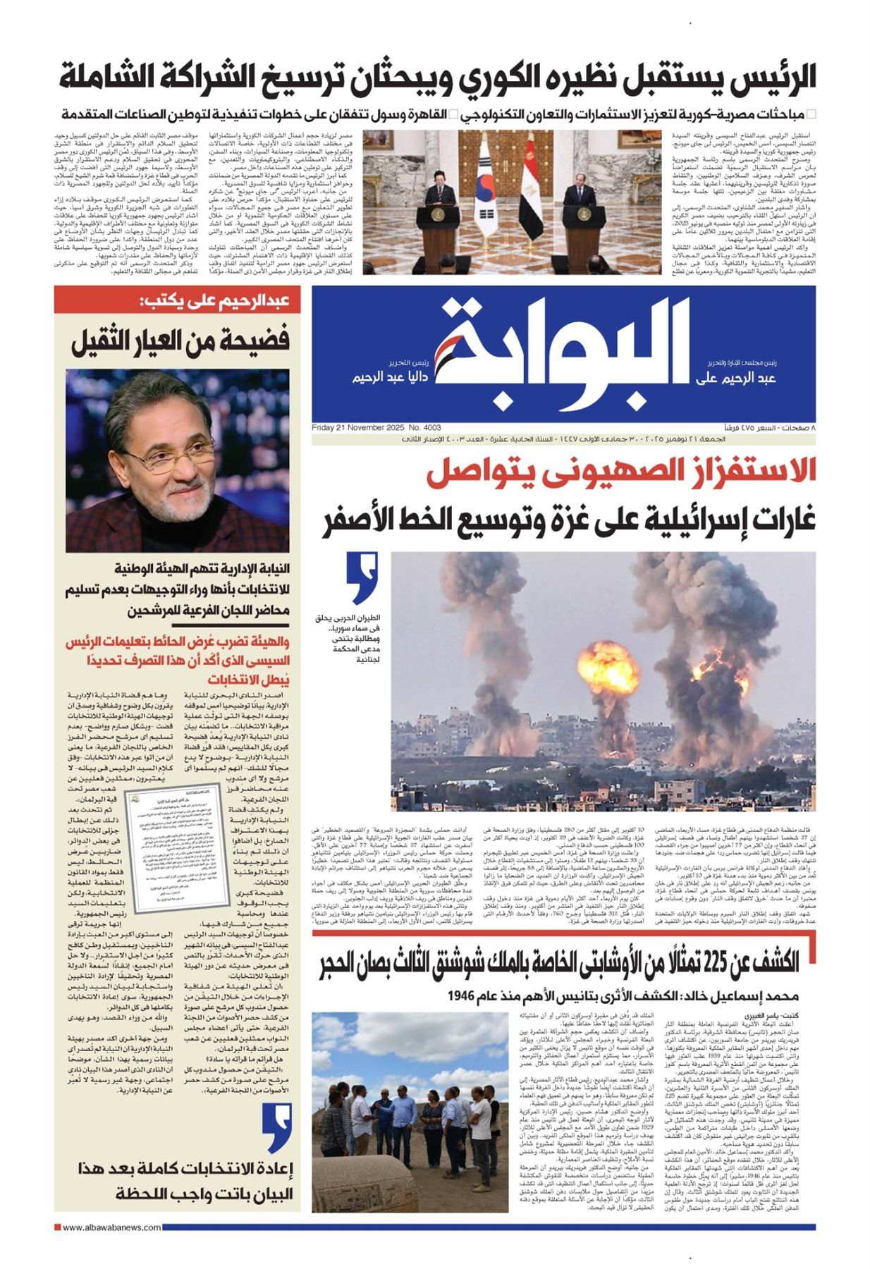 تقرأ غدًا في العدد الجديد من جريدة «البوابة»، الصادر بتاريخ الجمعة 21 نوفمبر 2025، مجموعة من الموضوعات والانفرادات المهمة، ومنها: