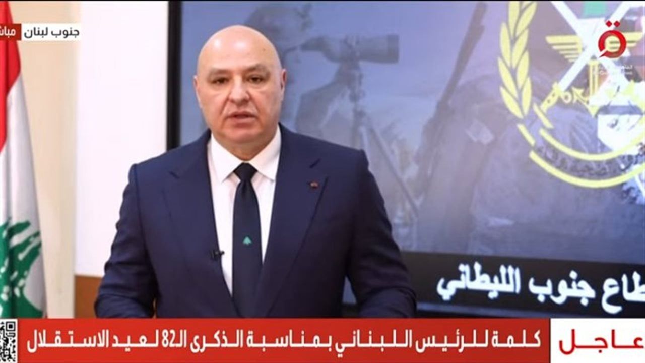وأضاف عون، خلال كلمته بمناسبة الذكرى الـ82 لعيد الاستقلال، نقلتها قناة "القاهرة الإخبارية"، أن الجنوب هو المكان الذي تُختبر فيه قيمة الدولة، وأن طريق الاستقلال لا يُبنى على غياب الدولة بل على حضورها، ولا على ازدواجية القرار بل على وحدة السلطة والراية، ولا يكتمل إلا بتحرير كل شبر من أرض لبنان.