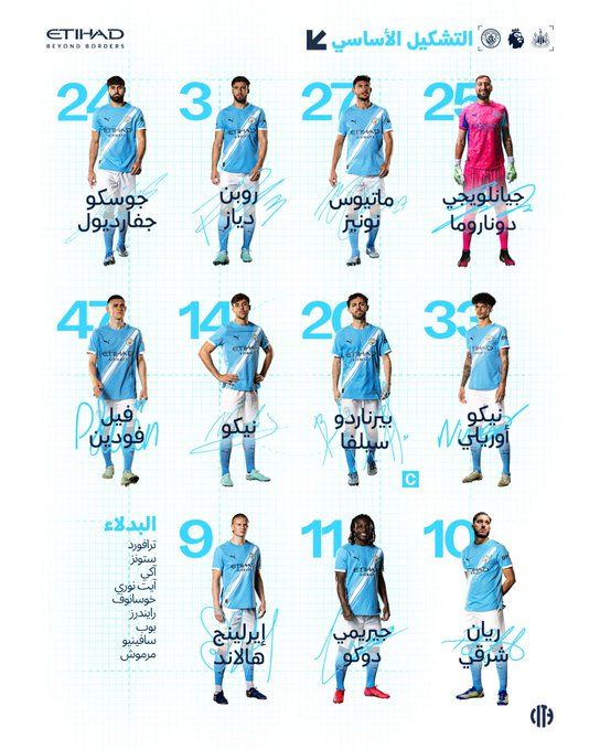 ويتواجد على دكة البدلاء عدد من الخيارات المميزة التي يعتمد عليها بيب جوارديولا لتعزيز قوة الفريق وفق مجريات المباراة.