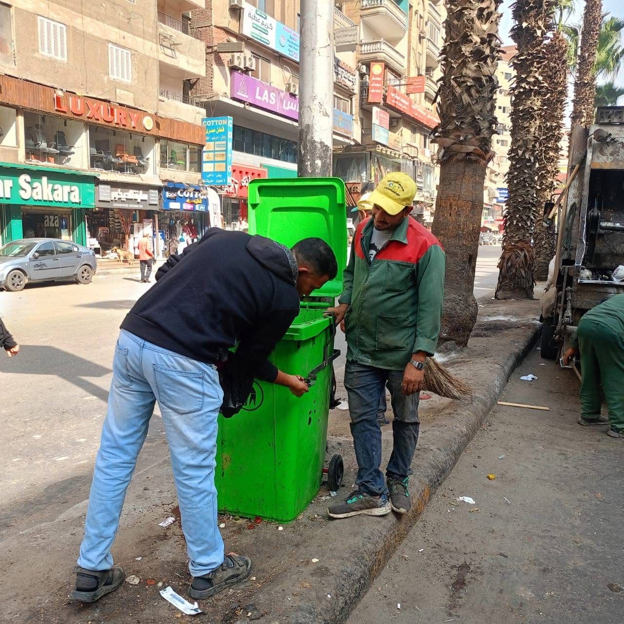 "نظافة الجيزة" تدعم شارع الملك فيصل بصناديق قمامة إضافية
