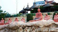 ويبلغ عدد تماثيل تلاميذ “المعلم شيبة” 48 تمثالًا يجلسون في حلقة حول البحيرة الكبرى، مستلهمين فلسفة بوذية تعكس قيم الحكمة والتأمل، بينما تتوسطهم لوحة الحكمة الثلاثية الشهيرة التي تدعو الإنسان لعدم التدخل فيما لا يعنيه.