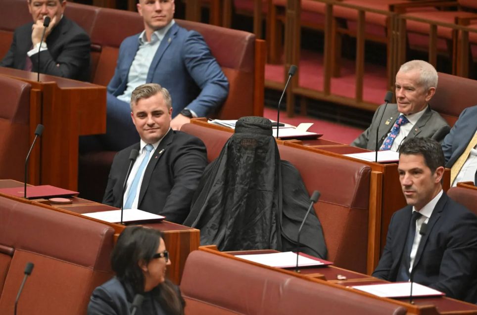 أثارت السيناتورة اليمينية المتطرفة بولين هانسون موجة غضب عارمة داخل مجلس الشيوخ الأسترالي بعد أن ارتدت النقاب مجددًا، للمرة الثانية، اليوم الاثنين، في خطوة وصفت بأنها "استعراض سياسي" يهدف لإحياء مساعيها القديمة لحظر ارتداء النقاب والحجاب وأغطية الوجه الكاملة في الأماكن العامة. وجاءت هذه الخطوة بعد دقائق من رفض البرلمان طلبها تقديم مشروع قانون جديد يسعى لفرض هذا الحظر.