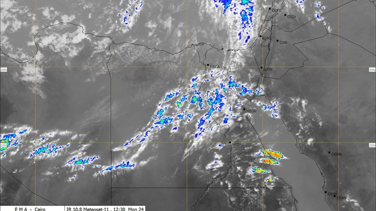 تشير أحدث صور الأقمار الصناعية إلى تطورات جوية نشطة تشهدها مختلف مناطق الجمهورية، حيث تتكاثر السحب الرعدية الممطرة على مناطق من جنوب سلاسل جبال البحر الأحمر وجنوب الصعيد، خاصة الأقصر وأسوان، مع استمرار فرص هطول أمطار متفاوتة الشدة ورعدية أحيانًا، وسط احتمالات لتشكل السيول على مدن حلايب وشلاتين ورأس بناس ومرسى علم.