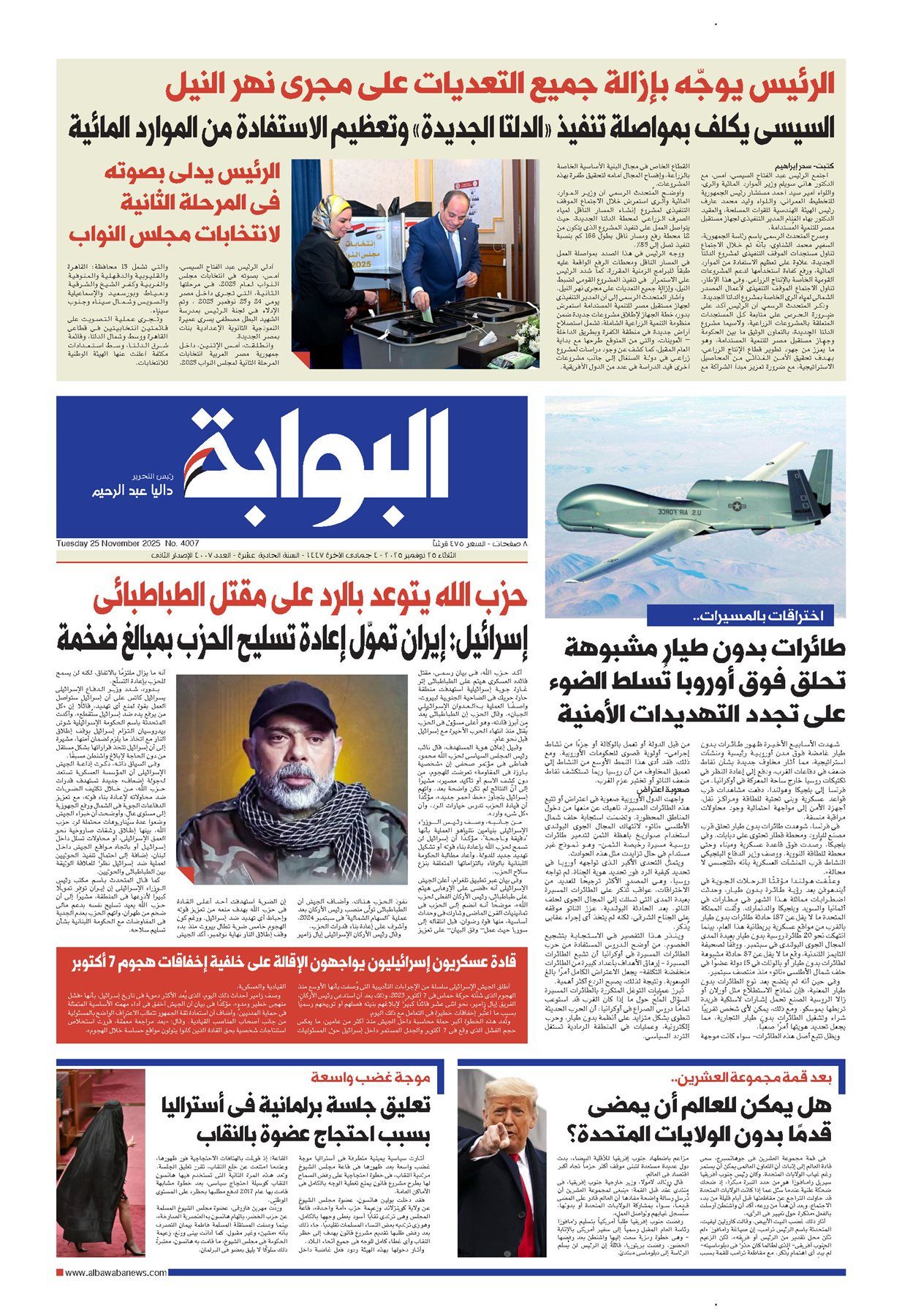 تقرأ غدًا في العدد الجديد من جريدة «البوابة»، الصادر بتاريخ الثلاثاء 25 نوفمبر 2025، مجموعة من الموضوعات والانفرادات المهمة، ومنها: