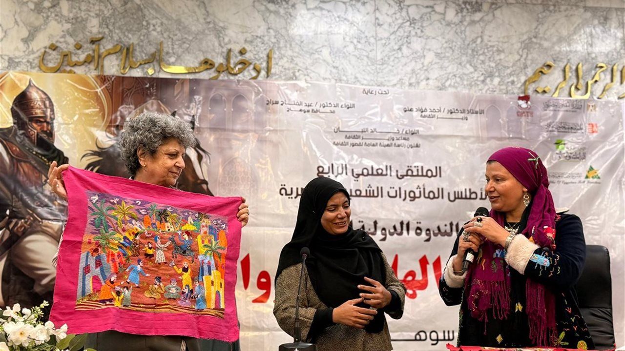 وفي كلمتها، أوضحت لولا لحام رئيس جمعية الصعيد، أن العقود الماضية شهدت إقبالا متزايدا على منتجات الجمعية اليدوية، ما شجع على تطوير أشكال فنية تحمل الحكايات البيئية قبل التوسع في إنتاج موتيفات مستوحاة من السيرة الهلالية، خاصة في قرية تونس بالفيوم.