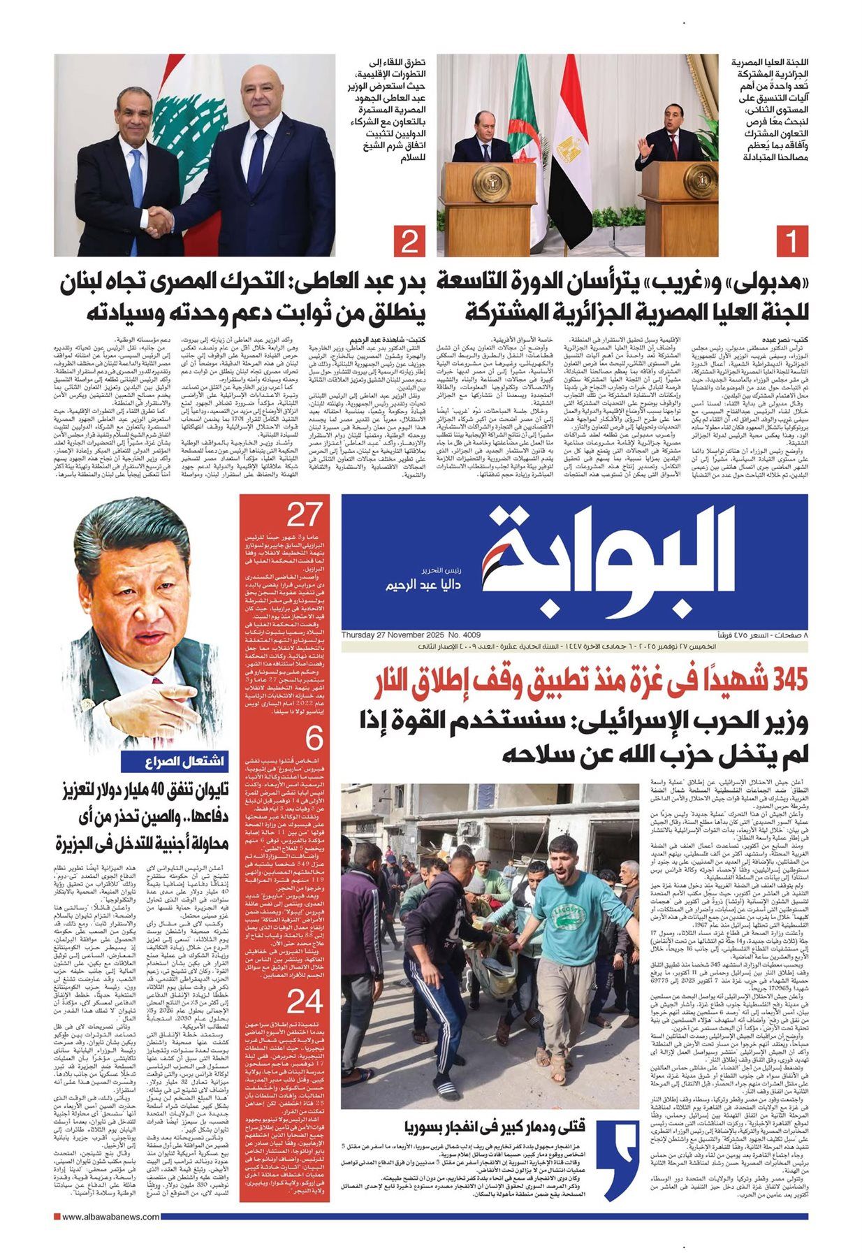تقرأ غدًا في العدد الجديد من جريدة «البوابة»، الصادر بتاريخ الخميس 27 نوفمبر 2025، مجموعة من الموضوعات والانفرادات المهمة، ومنها: