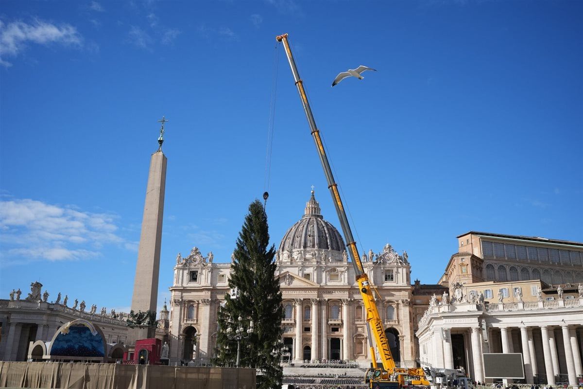 شهد اليوم الخميس، رفع شجرة عيد الميلاد في ساحة القديس بطرس بالفاتيكان استعدادًا لتزيينها.