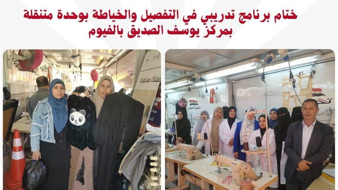 اختتمت مديرية العمل بالفيوم فعاليات الدورة التدريبية الثالثة في مهنة التفصيل وخياطة الملابس الجاهزة بقصر الجبالي بمركز يوسف الصديق، وذلك في إطار جهود المديرية لتعزيز مهارات الشباب والنساء وتوفير فرص حقيقية لسوق العمل.