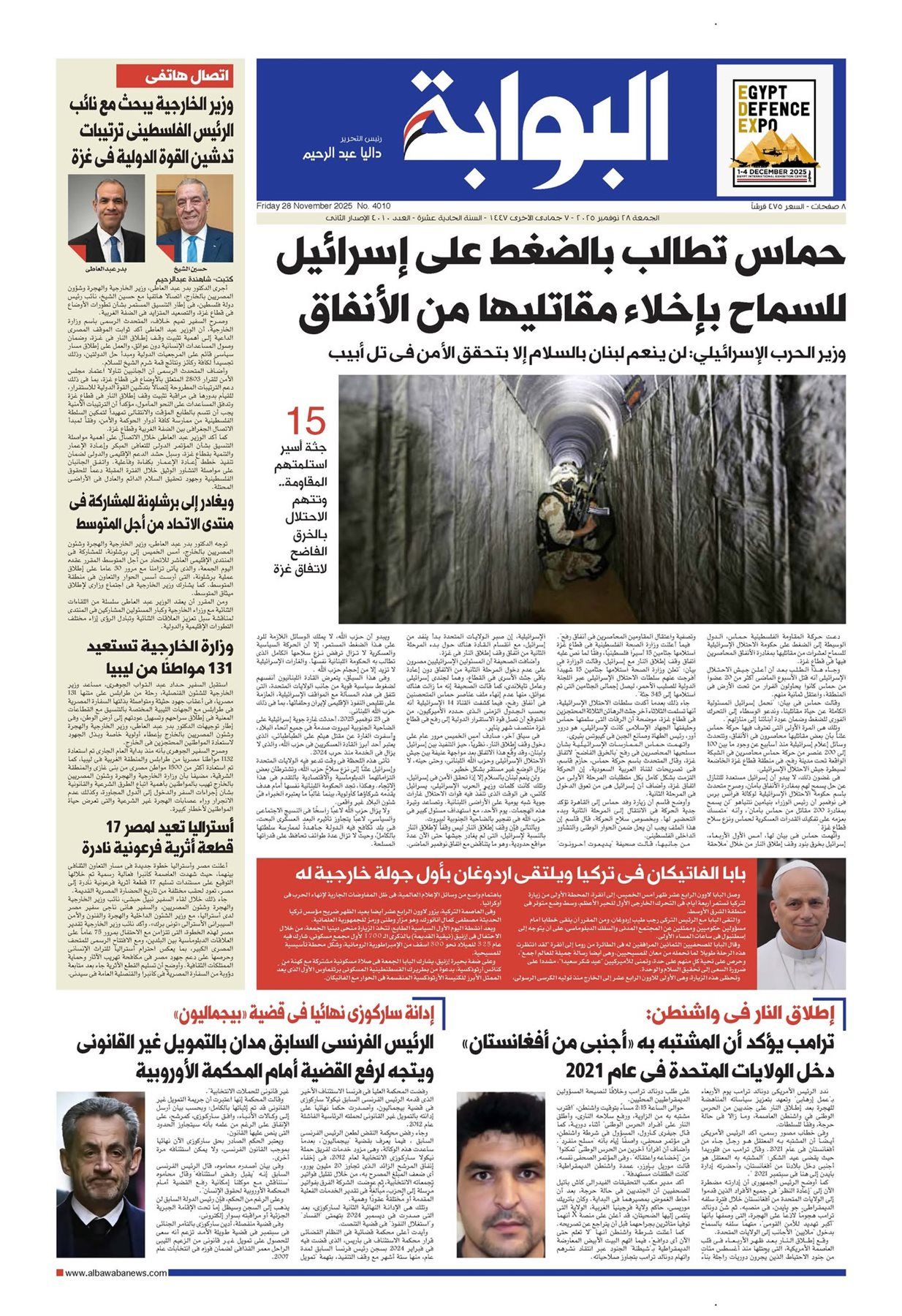 تقرأ غدًا في العدد الجديد من جريدة «البوابة»، الصادر بتاريخ الجمعة 28 نوفمبر 2025، مجموعة من الموضوعات والانفرادات المهمة، ومنها:
