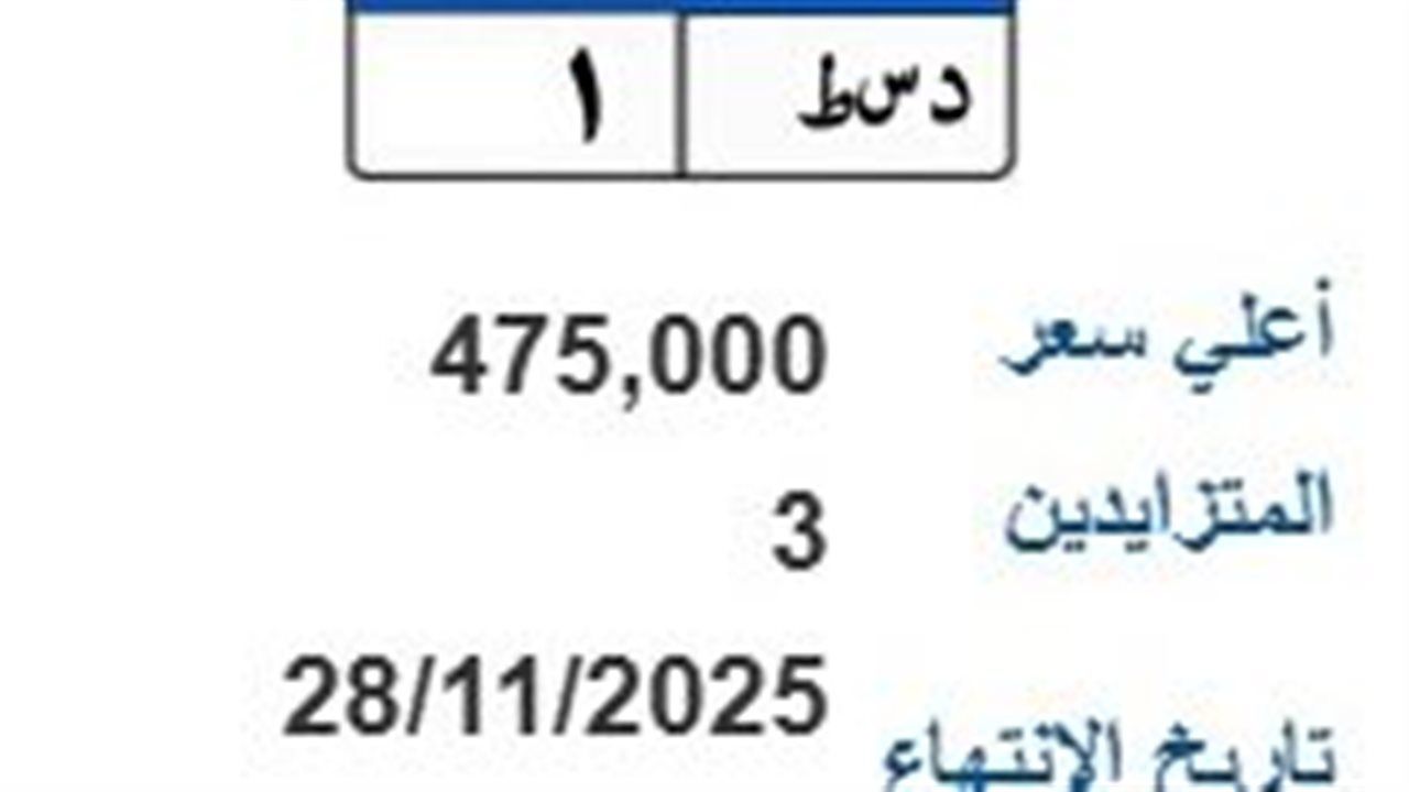 ومن ضمن اللوحات التي تُجرى المُزايدة عليها، لوحة تحمل رقم (د س ط-1) ووصل سعرها حتى الآن 475 ألف جنيه وتنتهي المزايدة عليها 28 نوفمبر2025.