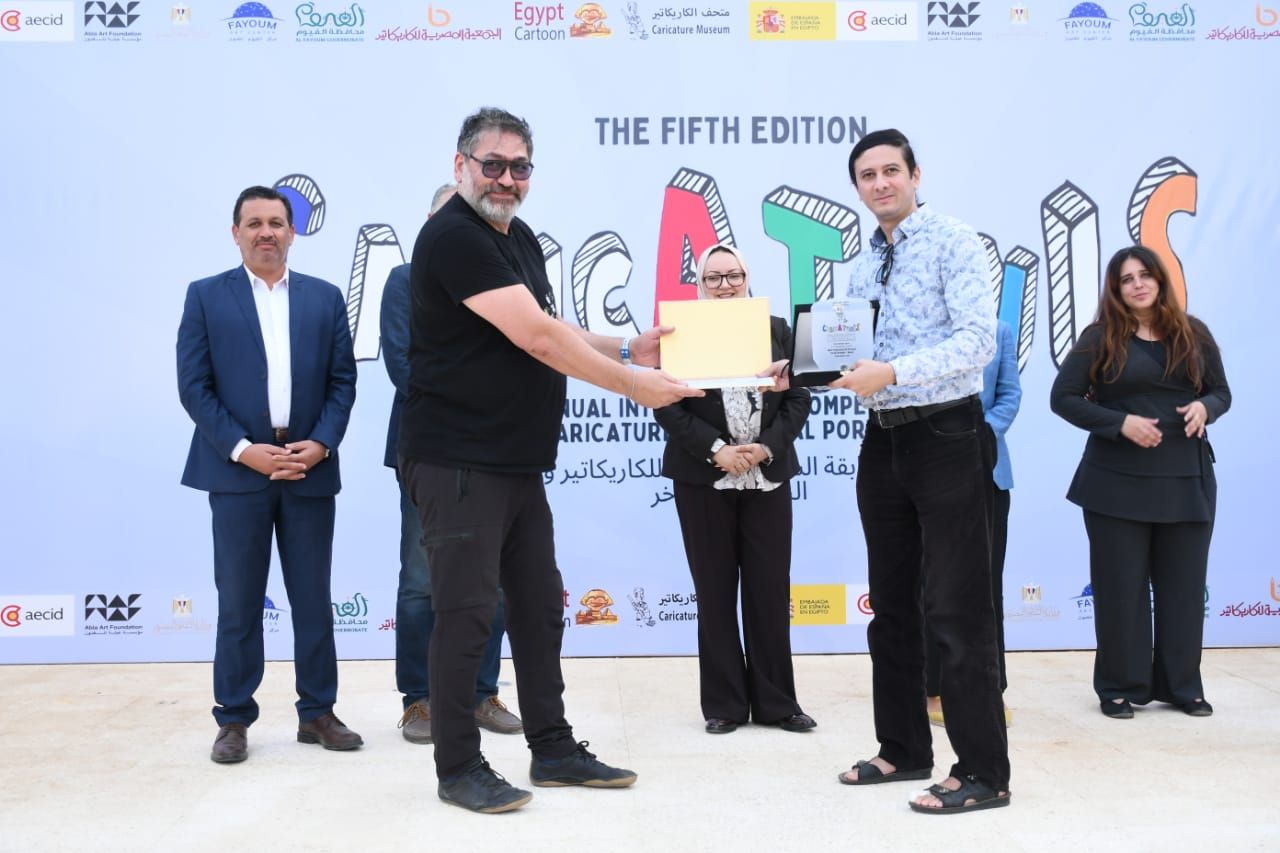 اختتمت فعاليات الدورة الخامسة من المسابقة الدولية لفن الكاريكاتير والبورتريه الساخر "كاريكاتونس"، التي احتضنها مركز الفيوم للفنون بقرية تونس، تحت رعاية وزارة الثقافة، ومحافظة الفيوم، وبالشراكة مع السفارة الاسبانية بمصر.