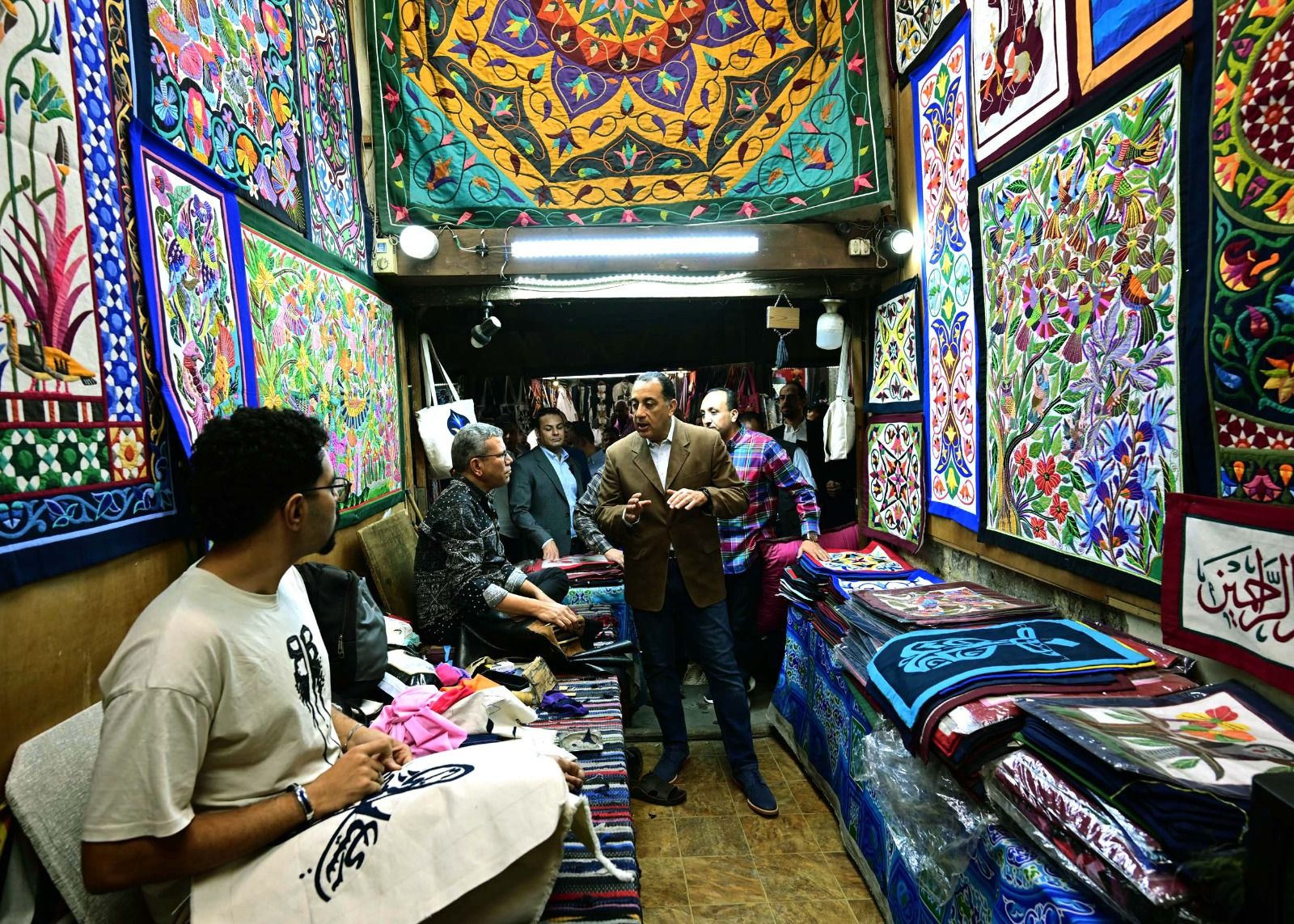 وخارج مسار الزيارة، حرص الدكتور مصطفى مدبولي على دخول منطقة الخيامية، وأجرى حوارات مع أصحاب المحال، وسألهم عن انتاجهم وطرق التسويق، واكد لهم ان الدولة لديها توجه لمساعدتهم في التسويق لمنتجاتهم ضمن معارض الحرف اليدوية، مشيرا إلى أن حديقة الفسطاط التى سيتم افتتاحها قريبا سيكون بها معرض للحرف التراثية لتسويق منتجاتكم.