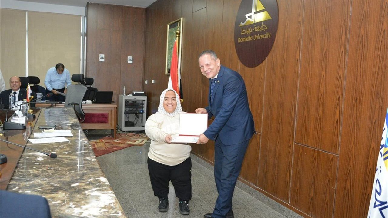 وخلال التكريم، أكد الدكتور حمدان ربيع المتولي رئيس جامعة دمياط، اعتزاز الجامعة بما حققته الطالبة من إنجازات مشرفة، موضحًا أن ما قدمته هاجر يعكس إرادة قوية وروحًا تنافسية فريدة، ويعد نموذجًا يحتذى به بين طلاب الجامعة، وخاصة طلاب ذوي الهمم.