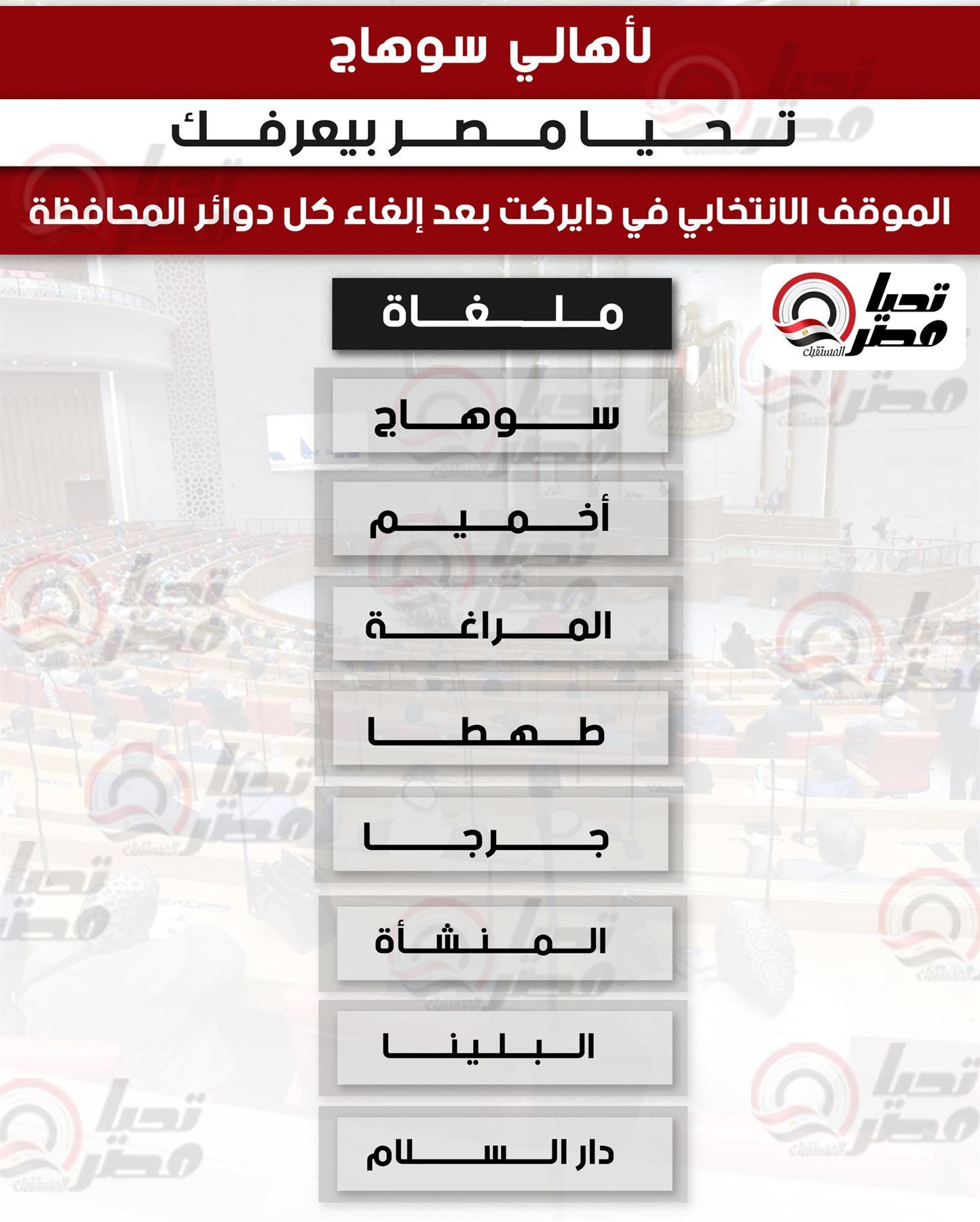 جميع دوائر محافظة سوهاج الملغي بها انتخابات مجلس النواب
