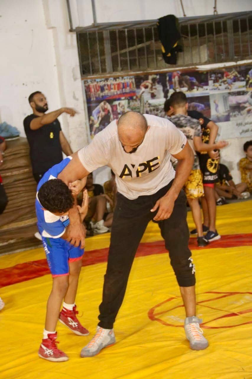 المصارع الأولمبي كرم جابر يقود تمرين مواهب المشروع ويشيد بالأداء الفني للاعبين