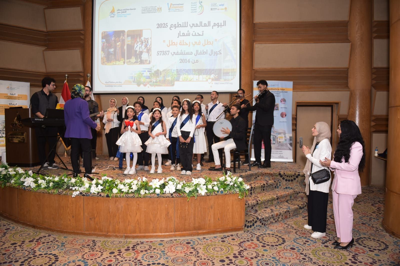 شهدت مستشفى سرطان الأطفال 57357 احتفالية خاصة باليوم العالمي للتطوع، شارك فيها طلاب الفرقة الرابعة من قسمي التربية الموسيقية والعلوم التربوية والنفسية، ضمن برنامج التدريب الميداني داخل المستشفى.