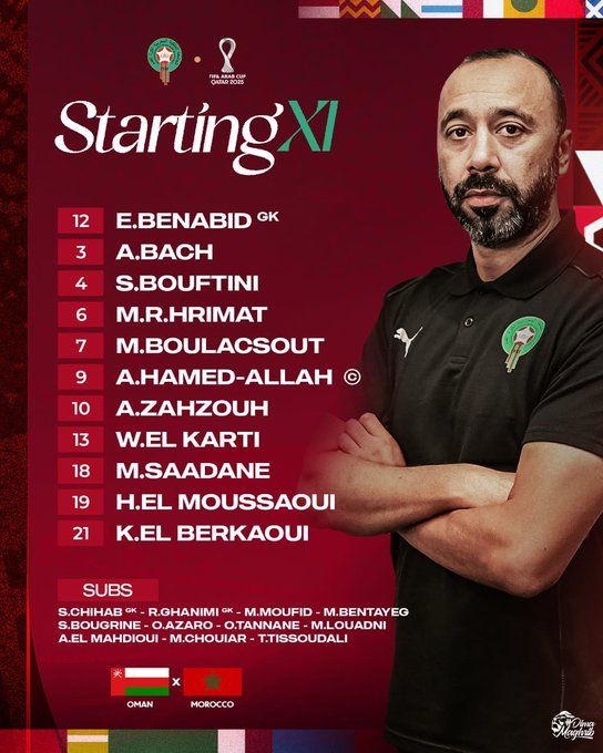 التشكيل الرسمي لمباراة منتخب المغرب وعمان في كأس العرب 2025
