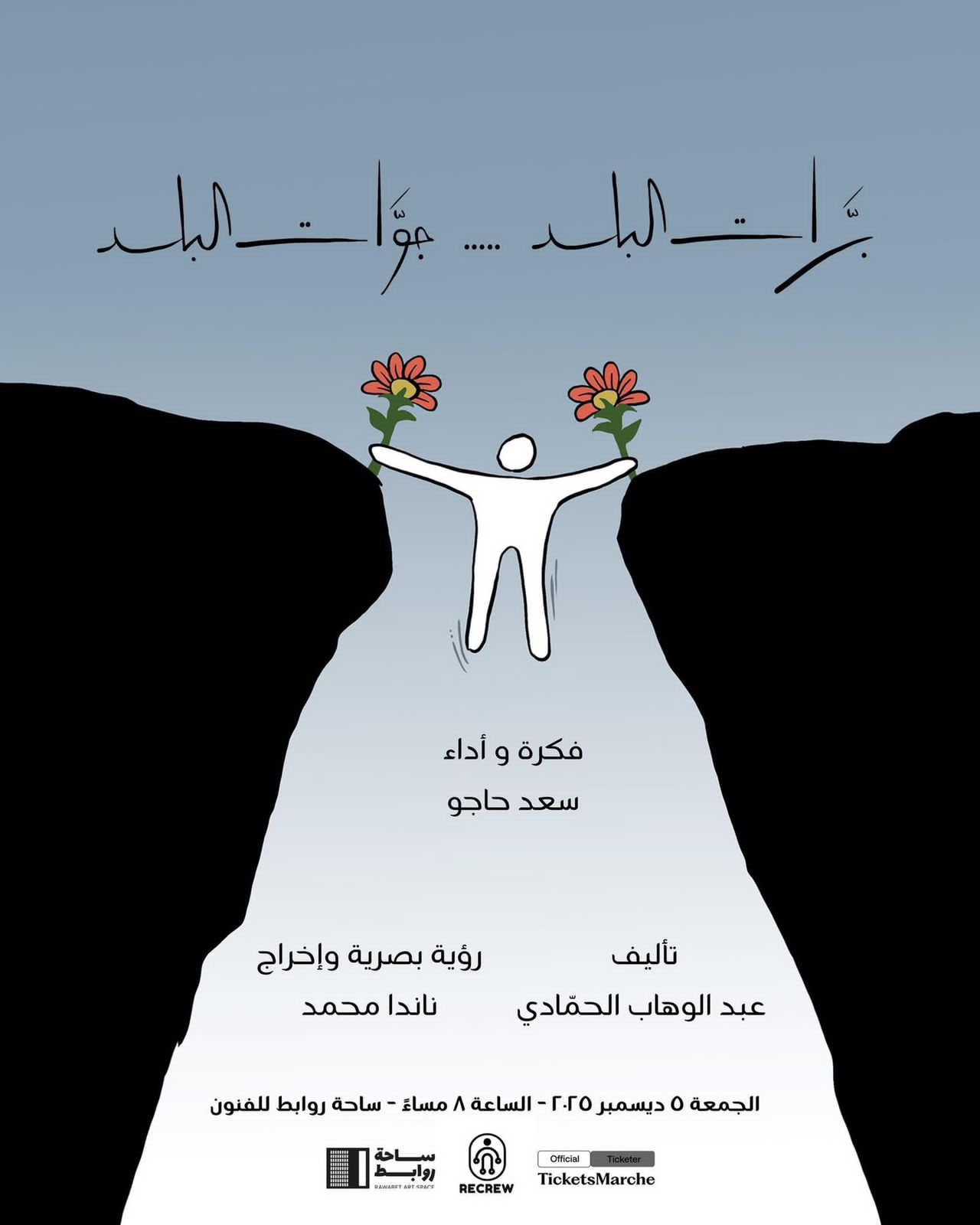 يستضيف مسرح روابط بوسط القاهرة في الثامنة مساء اليوم العرض المسرحي «برات البلاد جوات البلاد» وهي أول تجربة في الكتابة المسرحية يخوضها الروائي الكويتي عبد الوهاب الحمادي ويلعب بطولة العرض رسام الكاريكاتير السوري المقيم في السويد سعد حاجو وإخراج الممثلة السورية ناندا محمد يقول عبد الوهاب الحمادي " كان قالب المونودراما الأنسب للعرض، لأن يركز على العلاقة المباشرة بين الممثل والجمهور، مما يخلق تجربة مسرحية مغايرة.
