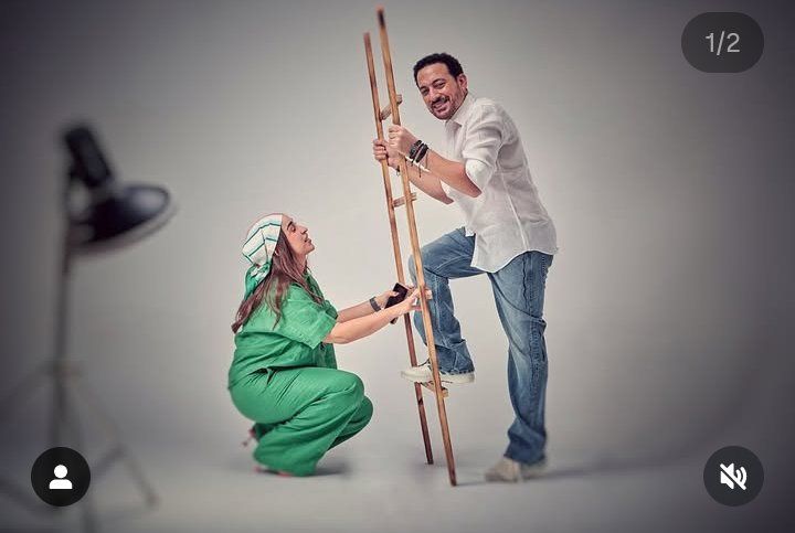 ونشرت زوجة دياب صور طريفة لهما سويا، حيث ظهور هو على سلم خشبي يصعد عليه، وزوجته ممسكة بهذا السلم، وعلقت عليها وفقا لما رصده موقع تحيا مصر: عيد ميلاد سعيد يا حبيبي، استمر في التسلق ومطاردة كل ما تريد، أنا هنا أمسك السلم... وأصرخ "اذهب أعلى!".