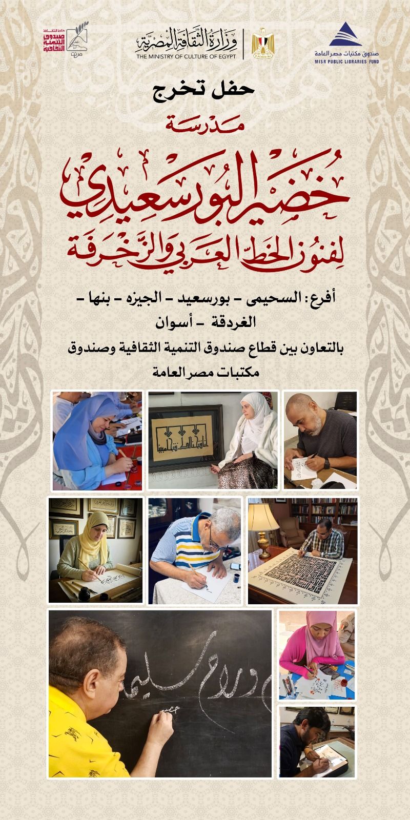 ينظم قطاع صندوق التنمية الثقافية في السادسة مساء غد الأحد، حفل تخرّج الدفعة الثالثة من مدرسة خضير البورسعيدي للخط العربي، وذلك بـمركز الإبداع الفني بساحة الاوبرا، في إطار دوره المستمر في دعم الفنون التراثية والحرف التقليدية وتوسيع قاعدة تعليمها في مختلف المحافظات.