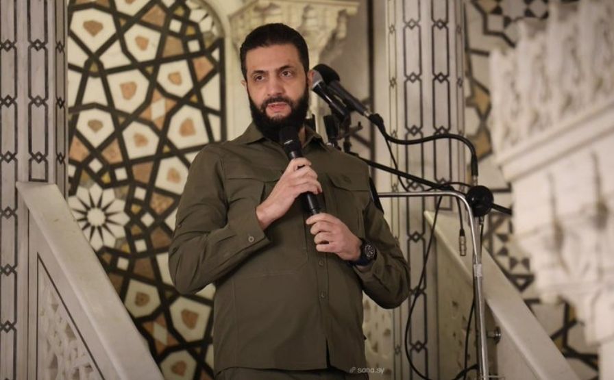 ظهر الرئيس السوري أحمد الشرع، فجر يوم الاثنين، في المسجد الأموي بدمشق وهو مرتدياً الزي العسكري حيث كان يؤدي الصلاة كما أدلى بتصريحات من ساحة الجامع وذلك احتفالاً بذكرى سقوط نظام الأسد الذي استمر هو وعائلته حكم البلاد لمدة 54 عاماً.