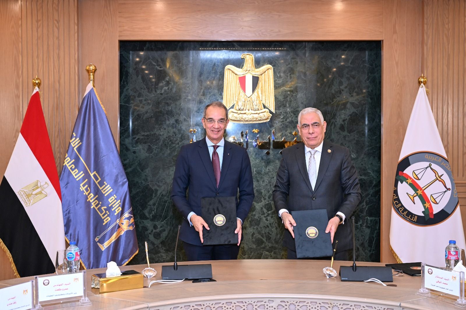 استقبل المستشار محمد شوقي النائب العام، اليوم السبت، الدكتور عمرو طلعت وزير الاتصالات وتكنولوجيا المعلومات، ولفيفًا من قيادات الوزارة، حيث وقع الجانبان بروتوكول تعاون بين النيابة العامة ووزارة الاتصالات وتكنولوجيا المعلومات؛ لتنفيذ (١٠) مشروعات تستهدف تطوير وتحديث منظومة التحول الرقمي بالنيابة العامة، والتوسع في تقديم خدماتها لجمهور المواطنين بصورة رقمية.