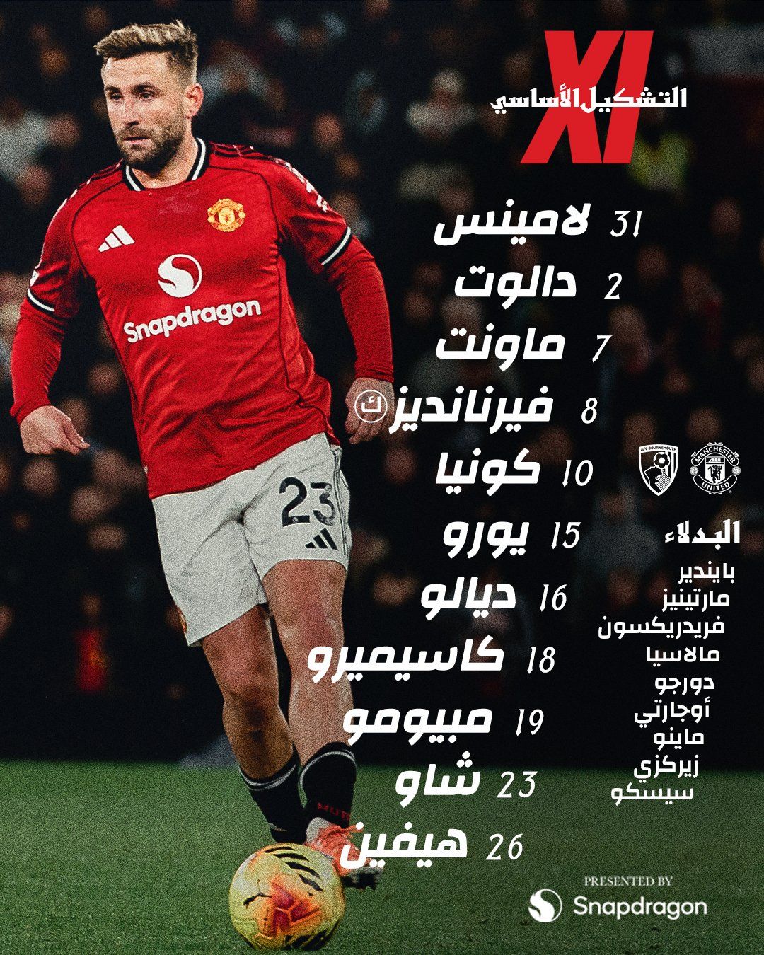 تشكيل مانشستر يونايتد الرسمي ضد بورنموث في الدوري الإنجليزي الممتاز