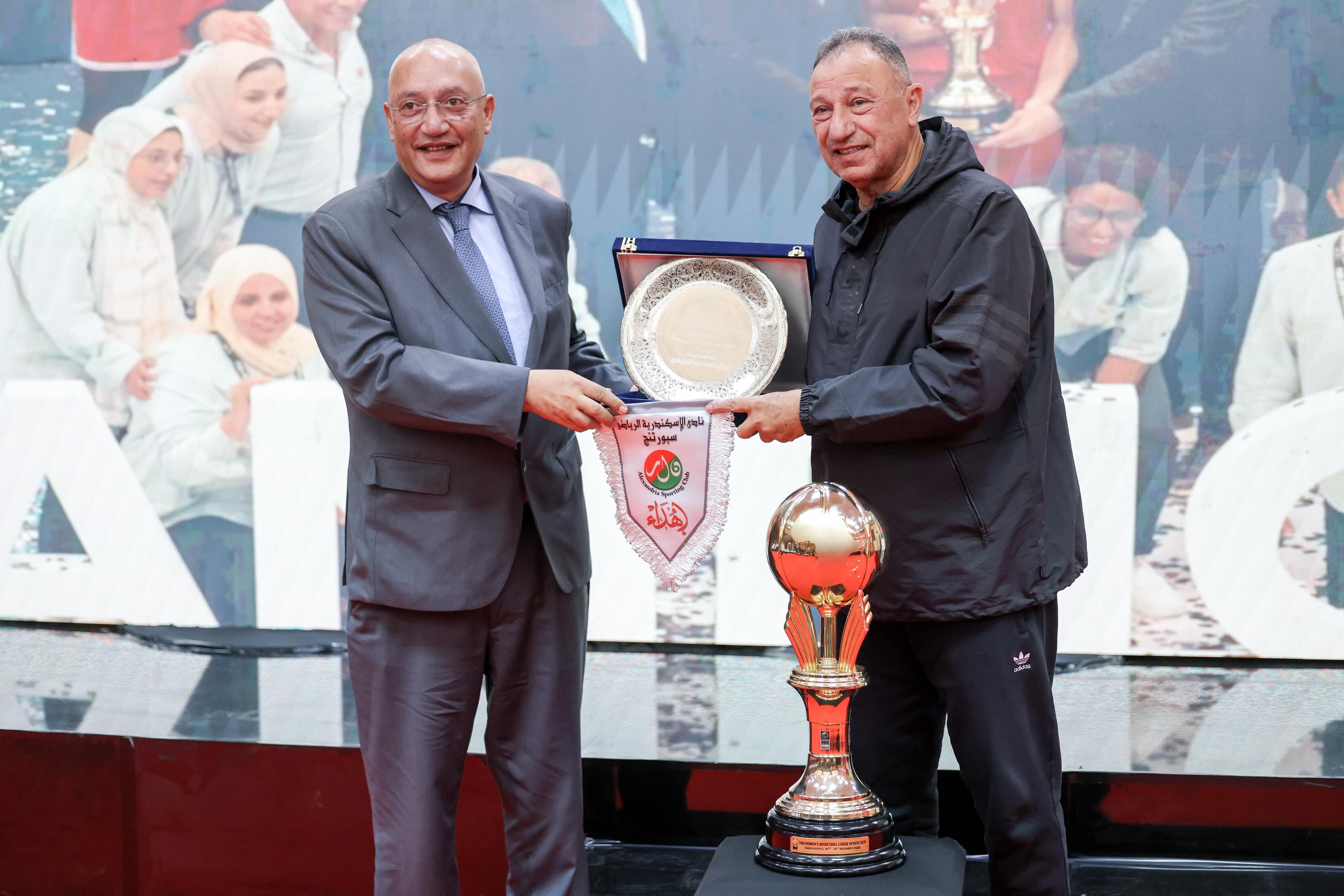 تحيا مصر، وقام محمود الخطيب بإهداء درع وعلم الأهلي إلى أحمد حسن، الذي بادر بدوره بإهداء درع وعلم نادي سبورتنج إلى رئيس الأهلي، تعبيرًا عن التقدير المتبادل والعلاقة المميزة التي تجمع الناديين.