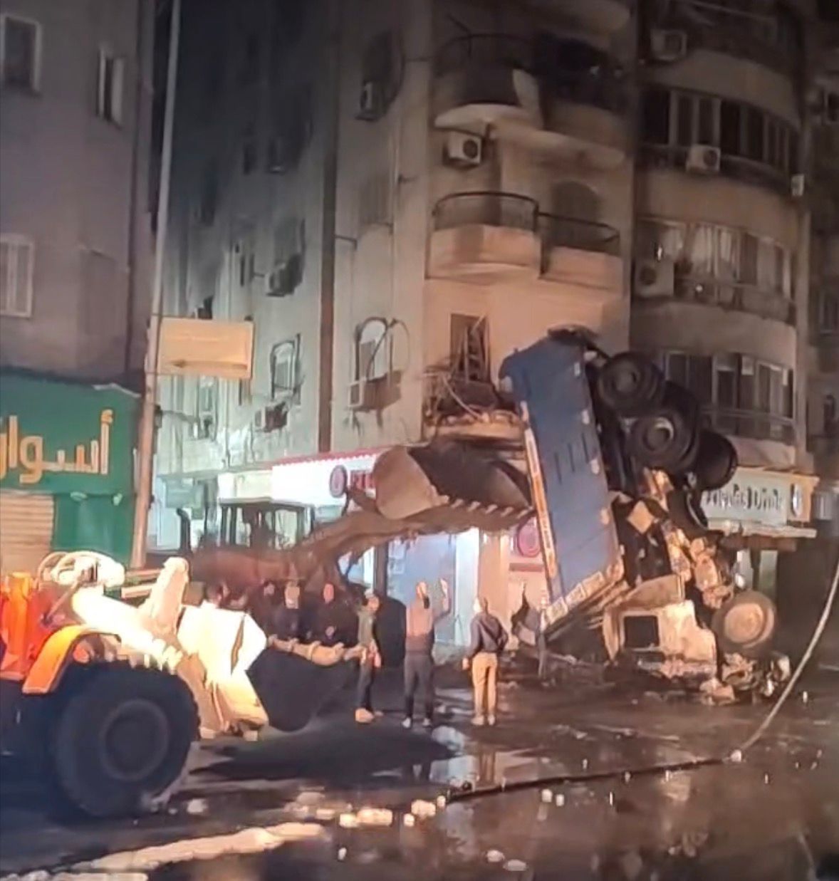 تبين من التحقيقات الأولية أن سيارة النقل الثقيل سقطت من أعلى الطريق واصطدمت بثلاث سيارات متواجدة بمكان الحادث، ما أدى إلى اشتعال النيران بالشارع وانتقال الحريق إلى محل عصارة ومقهى مجاورين، ووصول ألسنة اللهب إلى الدورين الأول والثاني لإحدى العمارات السكنية القريبة.