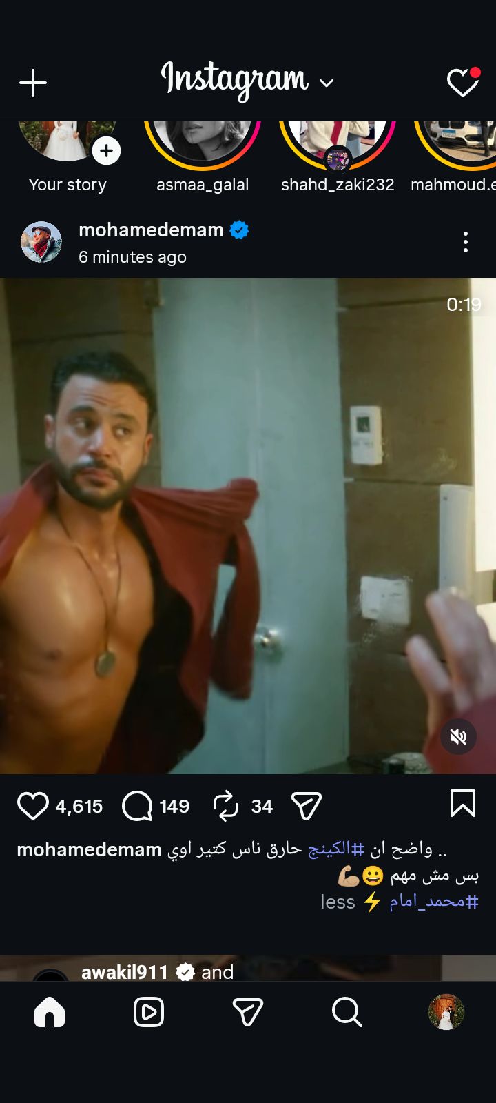 وقال محمد إمام في منشور عبر حسابه الرسمي بموقع تبادل الصور والفيديوهات انستجرام، ورصده موقع تحيا مصر: "واضح أن الكينج حارق ناس كتير أوي بس مش مهم".
