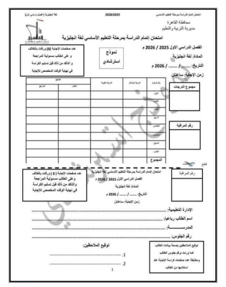 في إطار حرص مديرية التربية والتعليم بالقاهرة على الارتقاء بالمنظومة التعليمية، ودعم طلاب الشهادة الإعدادية خلال فترة الاستعداد لامتحانات الفصل الدراسي الأول، تواصل المديرية إتاحة النماذج الاسترشادية بنظام البوكليت في مادة اللغة الإنجليزية للعام الدراسي 2025 / 2026.