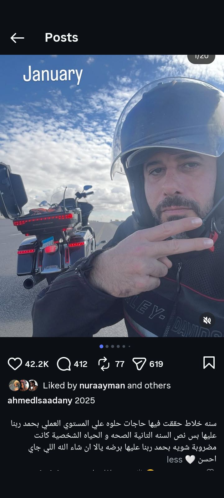 وأرفق أحمد السعدني في منشوره مجموعة صور من الأحداث الذي قام به خلال العام، معلقا عليها بعد التعليقات الطريفة.