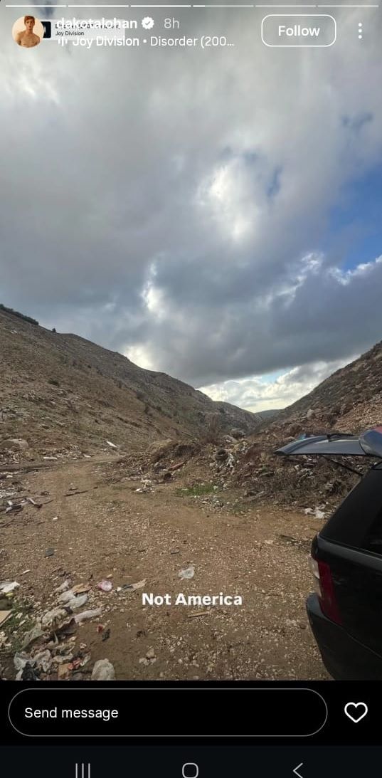أما شقيقها داكوتا، فنشر أيضاً صورة علّق عليها قائلاً "هذه ليست أميركا"، وأخرى من غابة أرز الباروك.