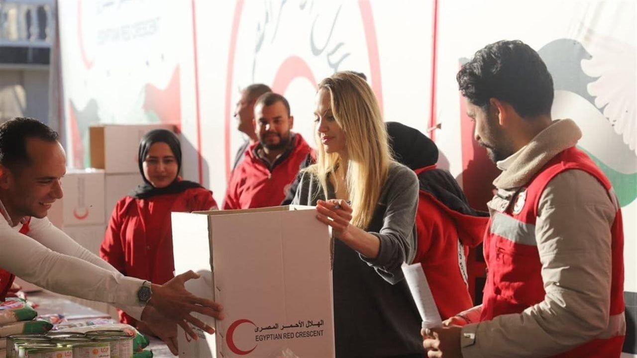 المركز اللوجستي للهلال الأحمر المصري بالعريش يستقبل النجمة أنجلينا جولي