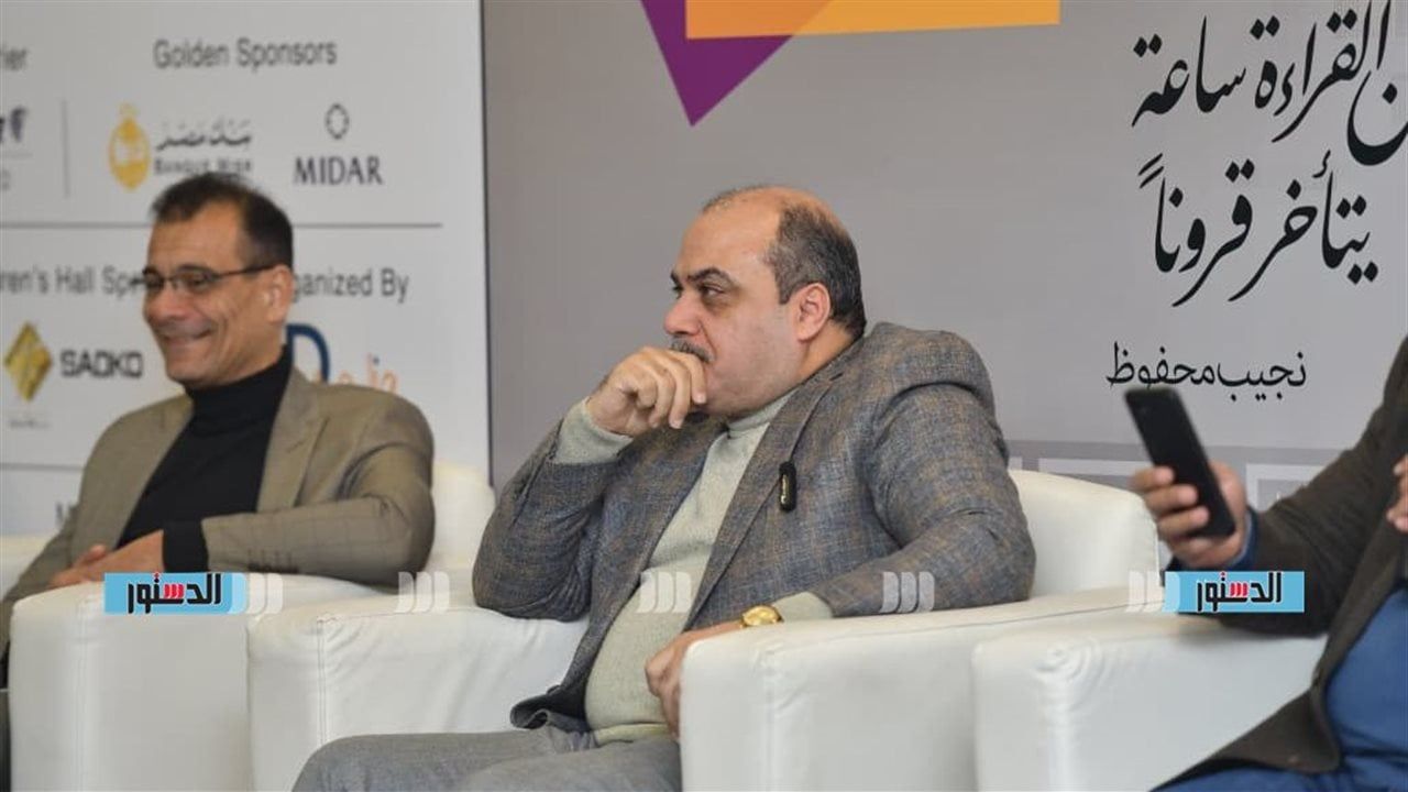 فى إطار فعاليات الدورة ٥٧ لمعرض القاهرة الدولى للكتاب، استضافت قاعة «كاتب وكتاب» ببلازا «١»، ندوة لمناقشة كتاب «أيام الألم.. كيف قتلنا نجيب محفوظ؟»، للدكتور محمد الباز، رئيس مجلسى إدارة وتحرير جريدة «الدستور»، الصادر عن دار «ريشة» للنشر والتوزيع.