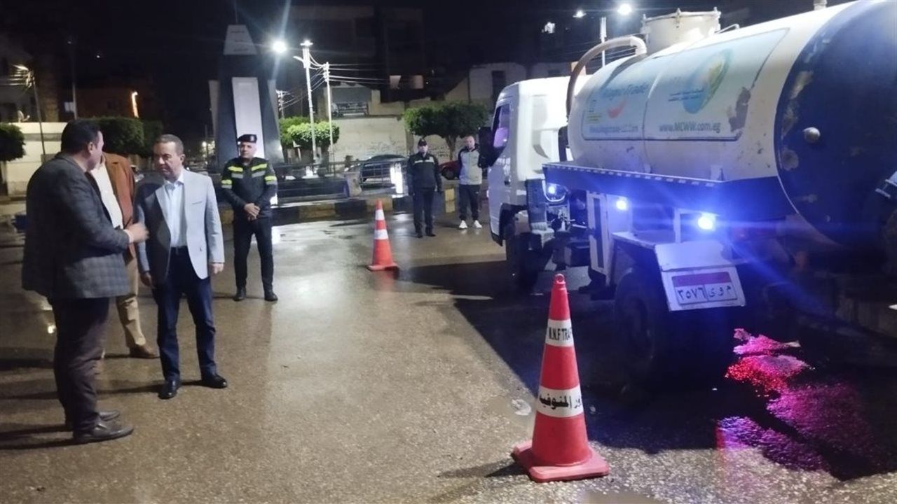 وأشار "الغريب" إلى أن الأجهزة التنفيذية بالمحافظة تعمل بكامل طاقتها وجاهزيتها للتعامل الفوري مع تداعيات موجة الطقس غير المستقر، لافتًا إلى استمرار أعمال شفط المياه حتى الانتهاء التام من كافة التراكمات، بما يحقق الحفاظ على المظهر الحضاري للمدينة ويضمن سلامة المواطنين.