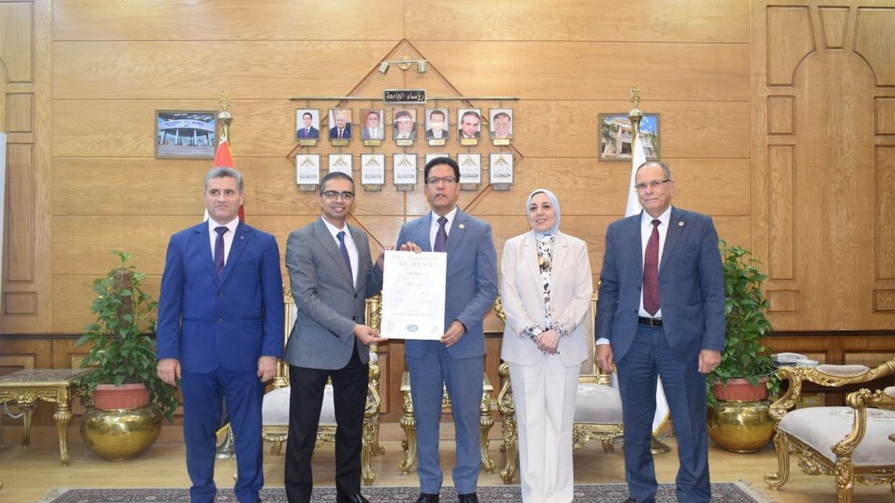 وقام الدكتور محمد أحمد عثمان، رئيس فريق التقييم لنظام الجودة الإدارية بمؤسسة AGA بتسليم رئيس الجامعة شهادات (أيزو 9001 لسنة 2015)، وأيزو 45001 لسنة 2018، بالإضافة إلى الإدارة البيئية (أيزو 2015-14001)، من شركة «AJA» الجهة المانحة لشهادة الأيزو والخاصه بادارات الجامعة وقطاع المدن الجامعية بجامعة بنها.