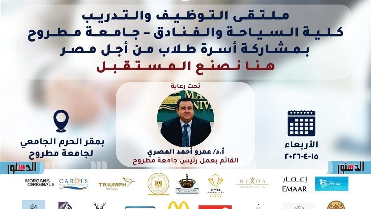 أعلنت كلية السياحة والفنادق بجامعة مطروح، عن تنظيم فعاليات ملتقى التوظيف والتدريب، وذلك بالتعاون مع أسرة “طلاب من أجل مصر”، في خطوة تهدف إلى دعم الطلاب والخريجين وتأهيلهم لسوق العمل، وتوفير فرص حقيقية للتوظيف والتدريب في مختلف المجالات.