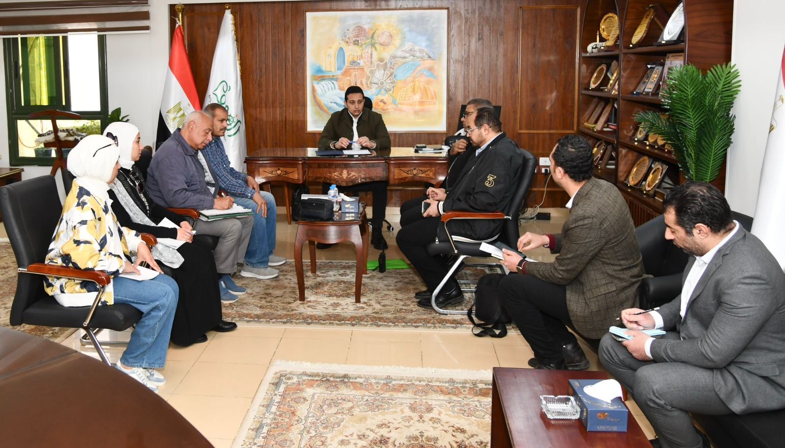 خلال الاجتماع، تواصل نائب المحافظ مع رئيس قطاع الإرشاد الزراعي، ورئيس قطاع الثروة الحيوانية والداجنة بوزارة الزراعة، واستشاري المشروع، للتنسيق بشأن تركيب شيلر التبريد والمولد بالمجمعين، طبقاً للتقرير الهندسي المعد من استشاري المشروع، حيث تم الاتفاق علي التركيب أول الأسبوع القادم.
