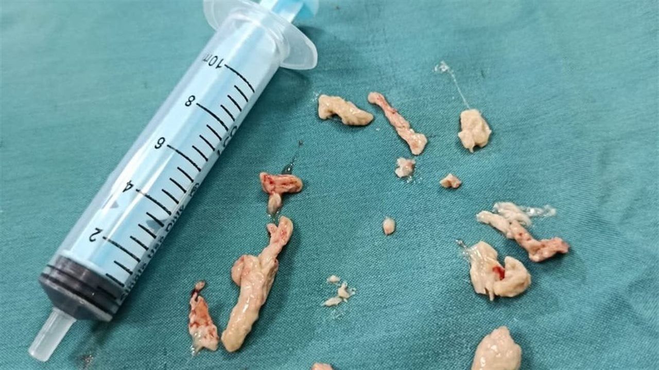 لافتاً إلى أنه جرى إزالة هذه الكتل تدريجياً، وكلما تم استخراج جزء ظهرت أجزاء أخرى، حتى تم بفضل الله إزالة معظمها واستعادة مجرى التنفس، مشيراً إلى أن الطفل خرج من العملية بحالة مستقرة وتحت الملاحظة الطبية، وتم إرسال العينات المستخرجة إلى المعمل لتحليلها وتحديد طبيعتها بدقة، مع استمرار المتابعة لحين الاطمئنان الكامل على حالته.