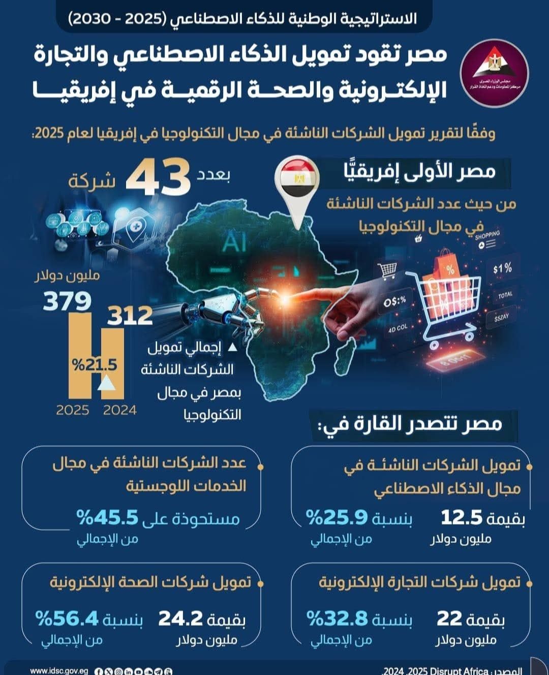 تعزز مصر مكانتها كمركز إقليمي للتكنولوجيا والابتكار الرقمي، وتقود قطاع الشركات الناشئة التكنولوجية والتعليمية، وتحقق نموًا ملحوظًا في صفقات التمويل والاستثمار، بما يعكس بيئة داعمة لريادة الأعمال التقنية.