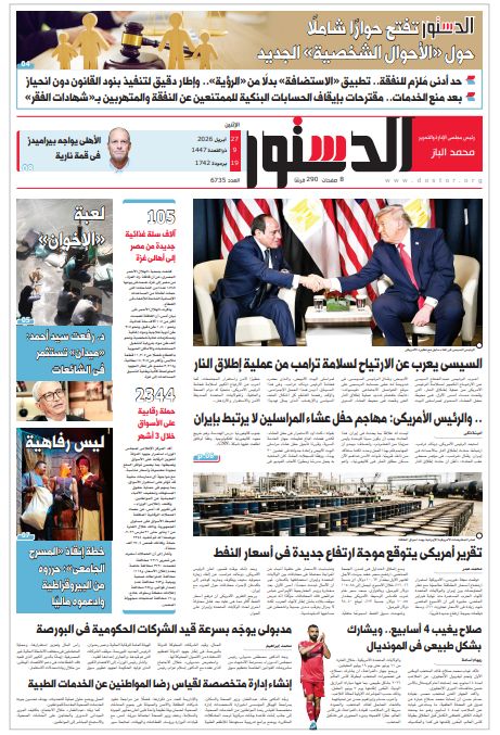 تنشر جريدة «الدستور» في عددها الصادر غدًا الإثنين تغطية موسعة لعدد من أبرز الملفات والقضايا التي تفرض نفسها على الساحتين المحلية والدولية، من خلال معالجة صحفية تجمع بين التحليل العميق والرصد الميداني لمختلف التطورات السياسية والاقتصادية والأمنية والاجتماعية.