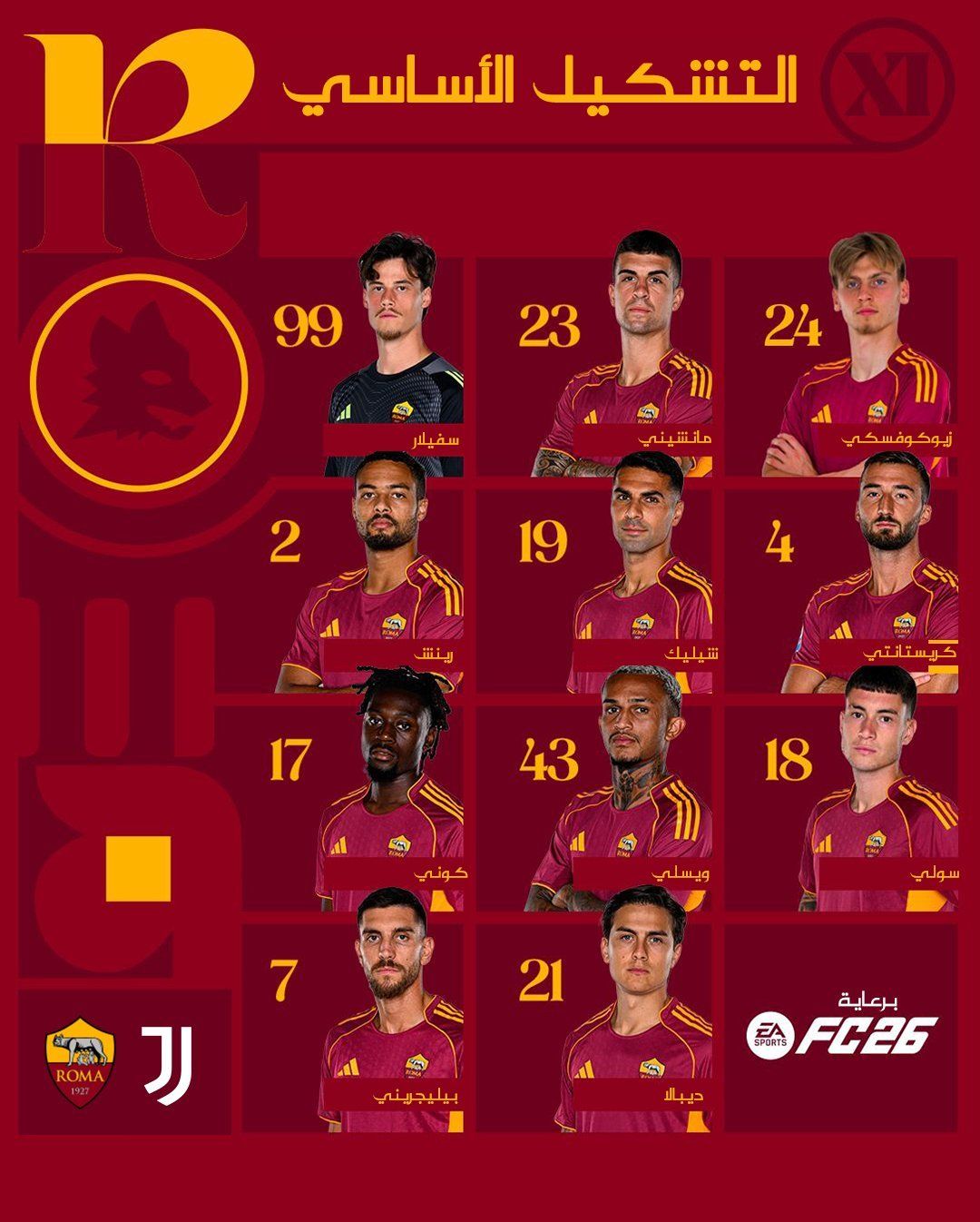 أعلن الجهازان الفنيان لفريقي يوفنتوس ضد روما، التشكيل الرسمي للقمة المرتقبة بينهما المقرر إقامتها في تمام العاشرة إلا الربع، من مساء اليوم السبت، في تورينو، ضمن منافسات الجولة الـ16 من بطولة الدوري الإيطالي للموسم الحالي 2025-26.
