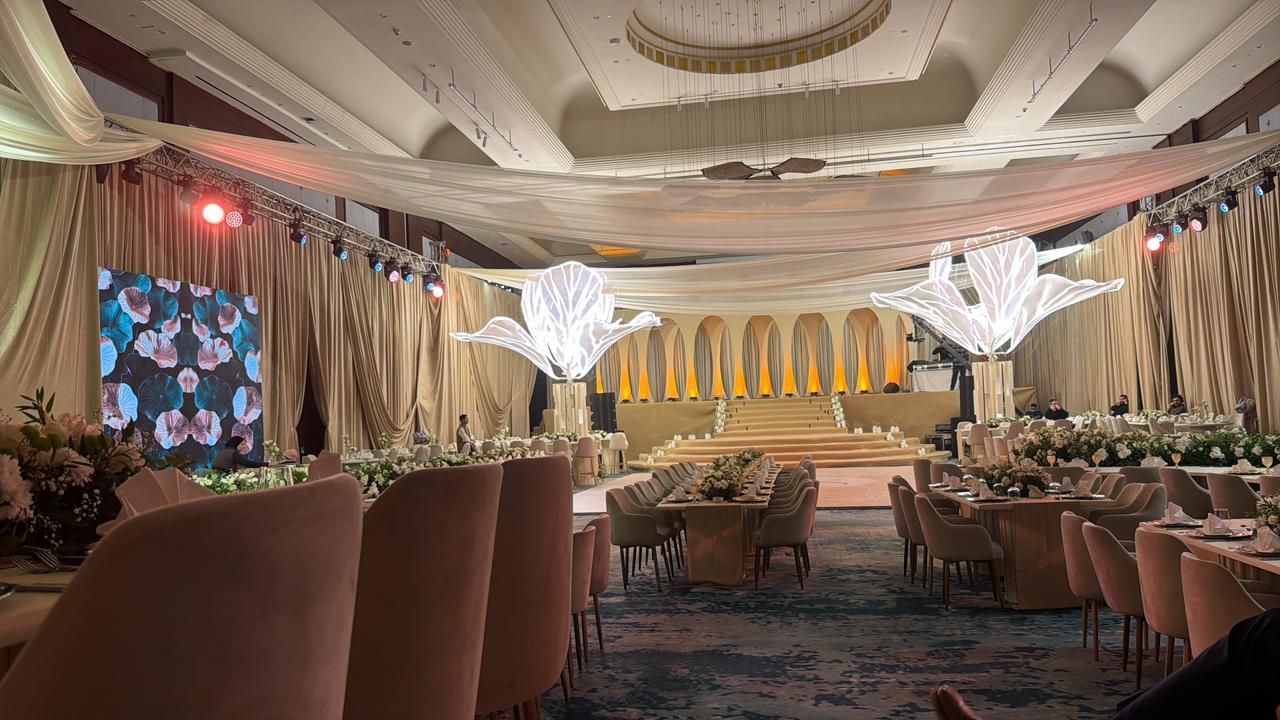 شهدت أحد القاعات بأحد الفنادق الكبرى فى القاهرة الإستعداد لإنطلاق حفل زفاف المغربى محمود بنتايج لاعب فريق الزمالك على سندس أحمد سليمان نجلة أحمد سليمان عضو مجلس إدارة القلعة البيضاء.
