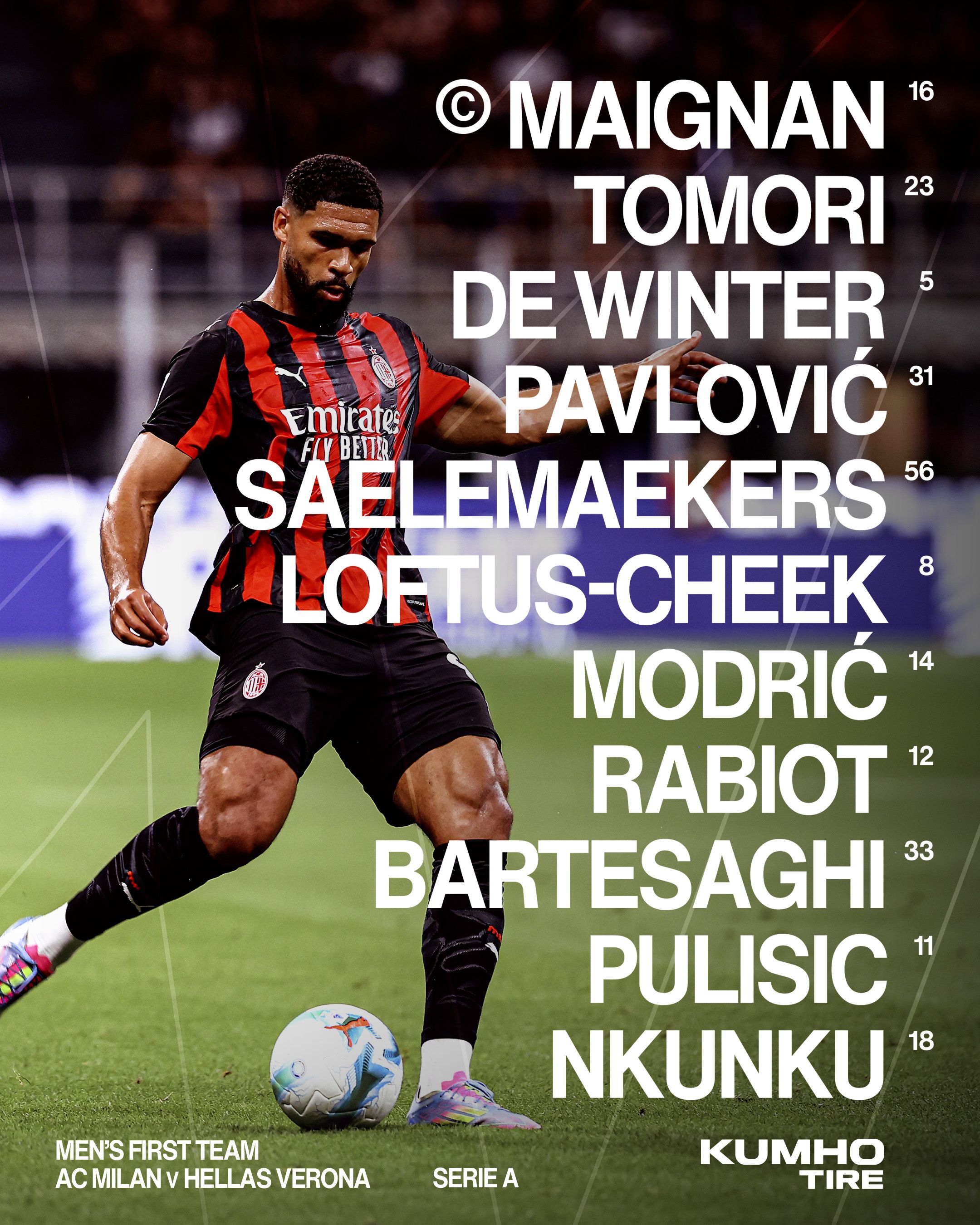وجاء تشكيل ميلان ضد هيلاس فيرونا كالتالي: