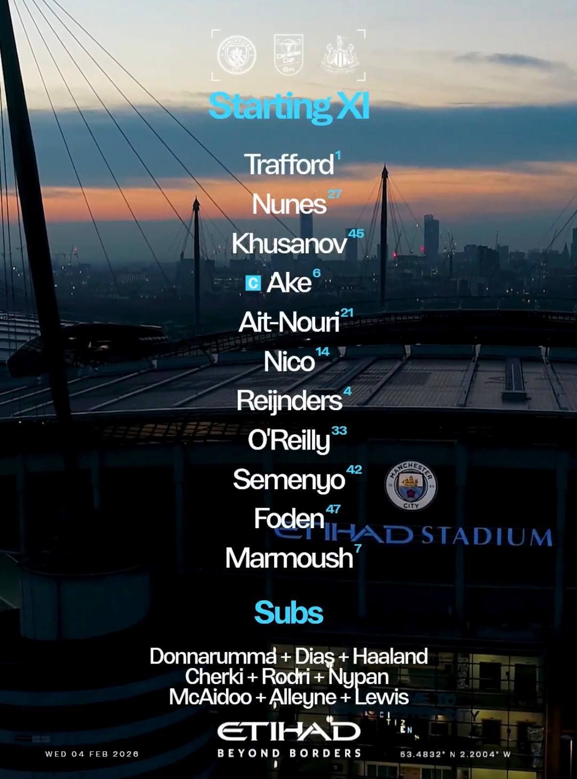 يقود النجم المصري عمر مرموش التشكيل الرسمي لفريقه مانشستر سيتي في مواجهة ضيفه فريق نيوكاسل يونايتد، والمقرر لها في تمام العاشرة من مساء اليوم الأربعاء، على ملعب الاتحاد في إياب نصف نهائي كأس الرابطة الإنجليزية.
