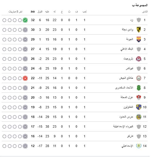 ترتيب مجموعة الهبوط فى الدوري