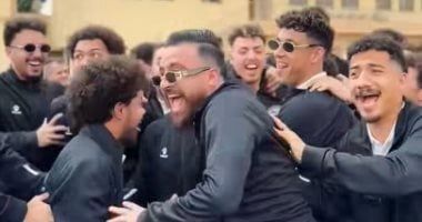 وشهد الفيديو رقص من اللاعبين وعبد الناصر محمد المدير الفني للفريق الذى قاد الفريق للصعود للدوري الممتاز بعد فترة غياب كبيرة عن الأضواء.